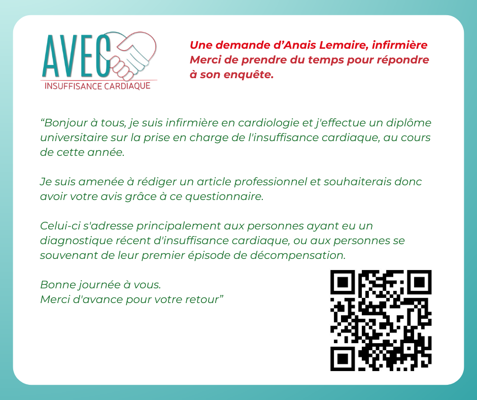 À propos de l'insuffisance cardiaque : L'insuffisance cardiaque est une maladie chronique grave dans laquelle le cœur ne peut pas pomper suffisamment de sang pour répondre aux besoins des autres organes du corps. Les causes les plus courantes de l'insuffisance cardiaque sont les maladies coronariennes, les infarctus du myocarde (crise cardiaque), les malformations cardiaques congénitales ou les valves cardiaques endommagées. Les symptômes comprennent l'essoufflement, la fatigue et le gonflement des membres. On estime qu'une personne sur cinq risque de souffrir d'insuffisance cardiaque et que c'est la cause la plus fréquente d'hospitalisation chez les personnes âgées de plus de 65 ans. Pourquoi il est si important de sensibiliser le public à l'insuffisance cardiaque ? Le Heart Failure Patient Council est unanime sur le fait que l'insuffisance cardiaque est mal reconnue et mal comprise tant par le grand public que par les professionnels de la santé. Il existe un consensus mondial sur les points suivants : Les premiers signes et symptômes de l'insuffisance cardiaque sont souvent considérés comme des signes normaux du vieillissement et ne sont donc pas considérés comme des manifestations précoces de la maladie. Il existe des lacunes importantes dans l'accès aux diagnostics dans les soins primaires, ce qui entraîne des inégalités et des retards dans le diagnostic. Les diagnostics d'insuffisance cardiaque sont souvent posés tardivement et le patient a souvent développé une maladie aiguë. L'accès aux meilleures pratiques internationales et aux soins spécialisés, y compris l'accès aux infirmières spécialisées en insuffisance cardiaque (à l'hôpital et dans la communauté), varie considérablement et est inéquitable. L'incapacité et les retards dans la reconnaissance et le traitement appropriés de l'insuffisance cardiaque contribuent à des taux élevés d'admission et de réadmission à l'hôpital, avec pour conséquence un fardeau économique pour les systèmes de santé et un impact énorme sur les patients et les aidants. Connaître les symptômes de l'insuffisance cardiaque L'insuffisance cardiaque peut affecter différentes personnes de différentes manières. Les symptômes peuvent apparaître soudainement et être initialement graves (insuffisance cardiaque aiguë) ou ils peuvent apparaître au fil du temps et s'aggraver progressivement (insuffisance cardiaque chronique). Si vous souffrez d'insuffisance cardiaque, vous pouvez présenter l'un de ces symptômes, ou une combinaison de ceux-ci. Les symptômes les plus courants d'une maladie cardiaque sont : Toux/ respiration sifflante Fatigue extrême ou absence d'énergie Perte d'appétit Mictions plus fréquentes, surtout la nuit Rythme cardiaque rapide ou palpitations Essoufflement Essoufflement, même en position couchée Gonflement des chevilles/pieds/estomac Prise de poids sur une courte période (>2kg sur 2 jours) En eux-mêmes, les signes d'insuffisance cardiaque ne sont pas nécessairement alarmants. Mais si vous présentez un ou plusieurs de ces symptômes, même si aucun problème cardiaque n'a été diagnostiqué, vous devriez consulter votre médecin généraliste et lui poser la question suivante : "Pourrais-je être atteint d'insuffisance cardiaque ?